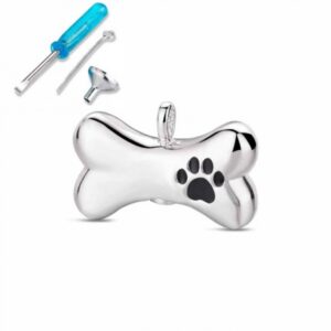 Viene con un destornillador, un embudo, y un palito para poder introducir cenizas de tu perrito, o un mechoncito de pelo.. Cualquier tipo de recuerdo que quieras mantener junto a tí de tu querida mascota.. También incorpora una bolsita con forma de saquito, para quien prefiera guardar su recuerdo, en un lugar determinado de la casa, etc..
