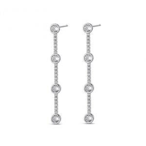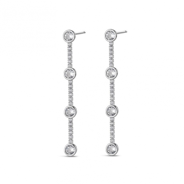Pendientes largos en plata rodiada con circonitas en círculos.