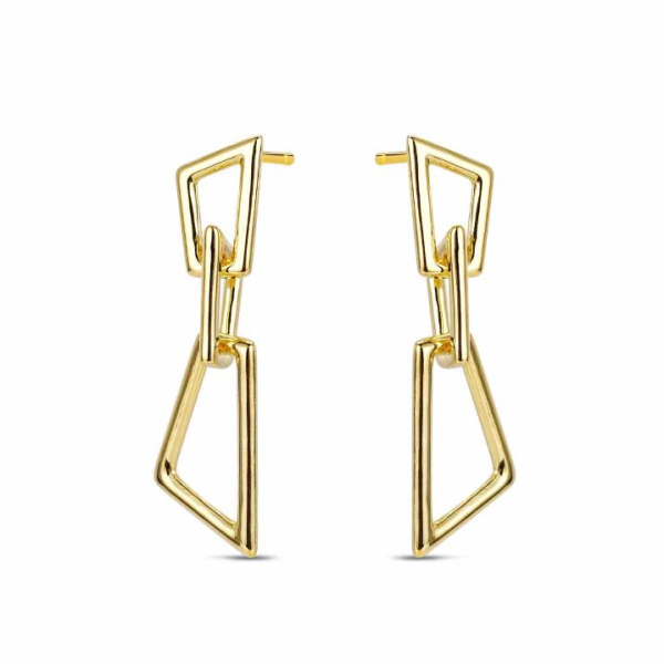 Pendiente de plata chapado trapecio triple de 25 mm cierre presión