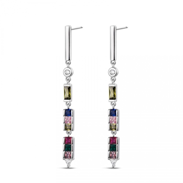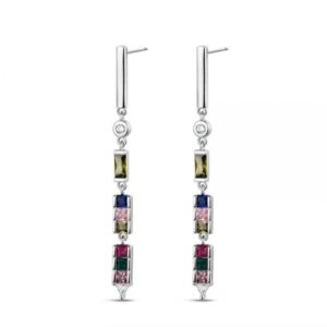 Pendientes de fiesta de Promojoya. Plata rodiada y circonitas de diferentes colores. Muy elegantes!
