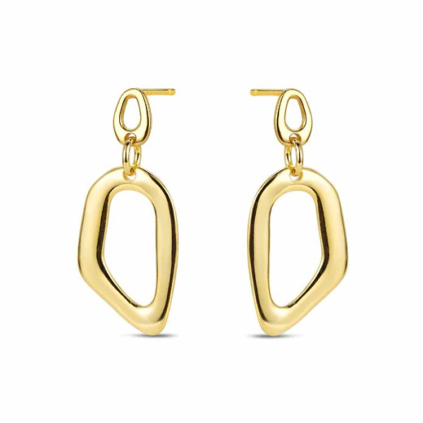 Pendiente de plata chapado óvalo irregular doble de 28 mm cierre presión